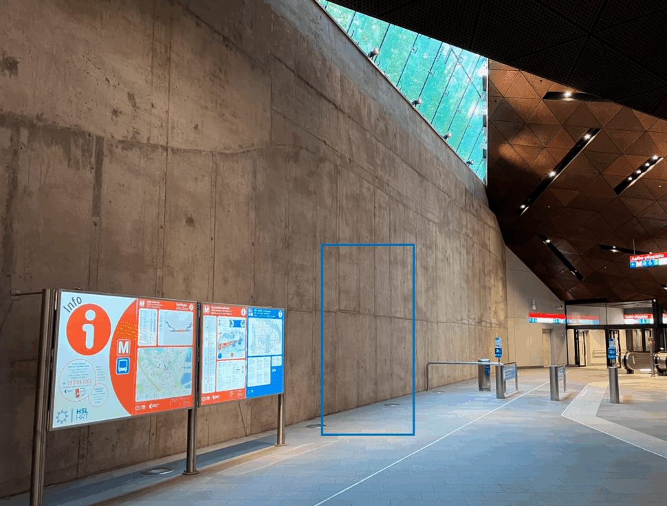 - Paikka B: Finnoonsillan sisäänkäynti, sisäänkäyntioven seinustalla.